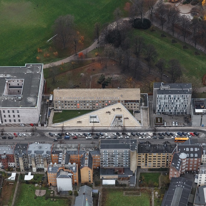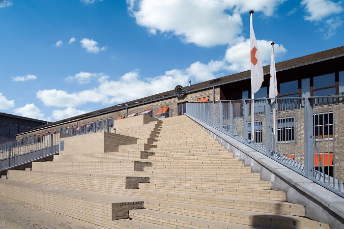 Architectenbureau COBE heeft deze openbare stadsruimte op het hellende dak gesitueerd. Dat dak is nu voorzien van traptreden en zitbanken uit cremewitte Hagemeisterbakstenen. COBE ontwikkelde de projectsortering Platin in het formaat 260 x 50 x 40 mm. Dit in samenspraak met baksteenproducent Hagemeister.