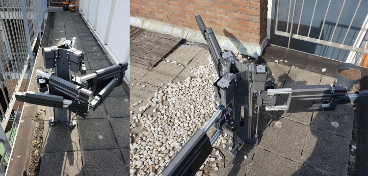 Foto: Een mobiele, 3-armige robot door het Lab voor Additive Manufacturing in Architectur van TU Delft.