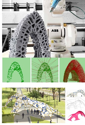 Professor Henriëtte Bier en haar promovendus van TU Delft richtten in 2014 met hulp van externe financiering het Robotic Building Lab op. Daarmee was de universiteit een van de eerste om te experimenteren met robotic manufacturing in architectuur. “Het gaat dan eerst om 3D-printen met keramiek”, aldus professor Henriëtte Bier van TU Delft. “We ontwerpen digitaal doorgaans een compleet gebouw, zoals een paviljoen, en vertalen dit naar robotpaden voor 3D printen.” In de beginfases van het Robotic Building Lab werd vooral de structurele integriteit van de geprinte bouwcomponenten getest, telkens met duurzaamheid in het achterhoofd. Bier: “We optimaliseren de bouwcomponenten en halen zoveel mogelijk materiaal uit zonder in te leveren op draagkracht. Daardoor wordt niet alleen minder materiaal gebruikt, ook de productietijd wordt verkort ”