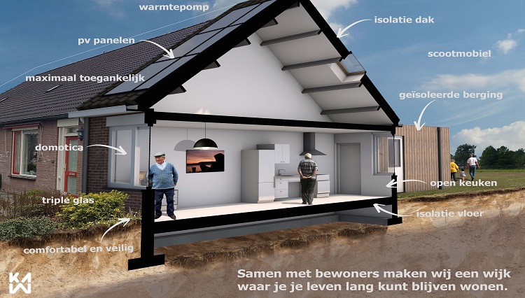 Bij elkaar opgeteld zorgen dit voor een uiterst praktische woning voor de vergrijzende bewoner. Deze modelwoning vormt de basis voor een groter plan: de Wijk van de Toekomst, waarin elke woning op duurzame wijze wordt aangepast zodat de bewoner zo lang mogelijk thuis kan blijven wonen. Daarvoor sloeg de gemeente de handen ineen met woningcorporatie De Volmacht, Natuur- en Milieufederatie Drenthe, Bouwend Nederland, KAW architecten en zorginstellingen Icare en Impuls.