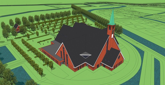 Het ontwerp van de kerk is gemaakt door Van Beijnum Architecten. Het pand wordt opgetrokken uit oranje baksteen en krijgt een enorme dakpartij. De komst van het godshuis is omstreden, temeer omdat het gebouw midden in een natuurgebied komt. Bovendien vrezen inwoners verkeersoverlast.