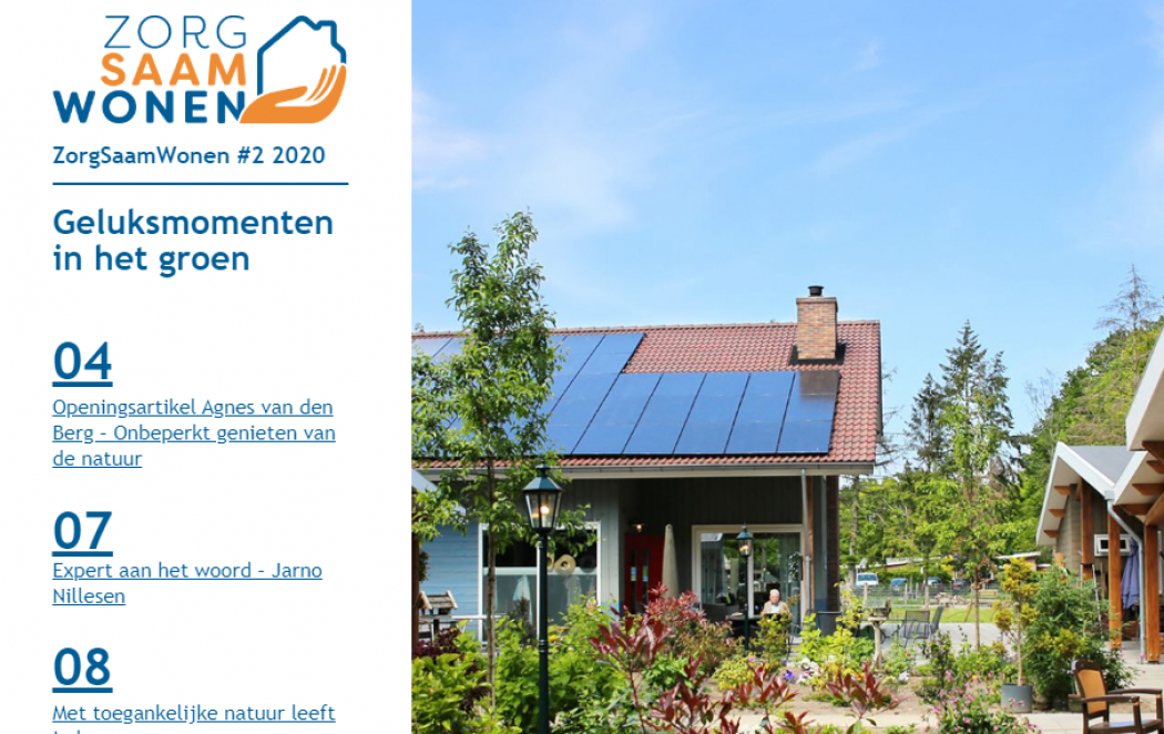 In dit magazine komen onder meer Zorgerf Putten, een interview met wetenschapper Agnes van den Berg en een column van Karin Jacobs aan bod. Ook duikt de redactie van ZorgSaamWonen in de wereld van toegankelijkheid in relatie met groen, met aan het woord Denise Janmaat van het Nederlands Instituut voor Toegankelijkheid.