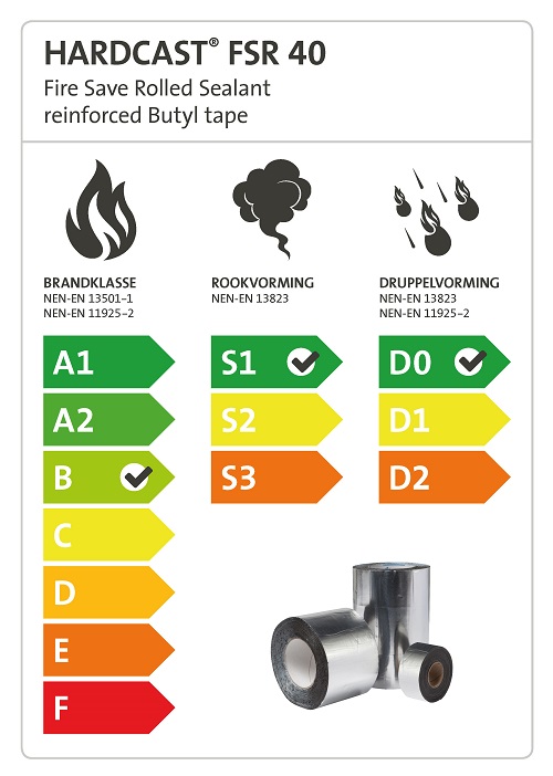De brandvertragende butyltape FSR 40 laat alternatieve producten op het gebied van brandbestendigheid en rook- en druppelvorming ver achter zich. In Europees vastgelegde testen wordt bepaald hoe producten reageren op hitte en de mate waarin ze bijdragen aan een snelle uitbreiding van een brand. De FSR 40 vertoonde in geen van de testen vlamoverslag. Naast de brandbaarheid (brandklasse) wordt ook de klassering voor rookontwikkeling en druppelvorming bepaald. Brandende druppels zijn een direct gevaar voor personen (bijvoorbeeld reddingswerkers) en voor het ontstaan van nieuwe brandhaarden op andere plaatsen. In de praktijk komt het er op neer dat het product door deze testresultaten als 'heel moeilijk brandbaar' is te kwalificeren.