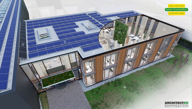 Het kantoor voor 50 medewerkers wekt op jaarbasis ruim 50% meer zonne-energie op dan dat het verbruikt voor verwarming, koeling, ventilatie, verlichting en computers. Het overschot aan energie wordt in de naastgelegen fabriek gebruikt voor het snijden van RVS en het opladen van heftrucks. De bouwmaterialen zijn waar mogelijk ‘Cradle to Cradle’ gecertificeerd. Dat wil zeggen dat ze bestaan uit grondstoffen die het milieu geen schade toebrengen en die aan het einde van hun levensduur herbruikbaar zijn. Zo bestaat de hoofddraagconstructie van kantoor uit lijmvrij massiefhout, wat van alle mogelijke bouwmaterialen de laagst mogelijke CO2-voetafdruk heeft. De keuze voor dit houten casco is doorslaggevend geweest voor de hoogste BREEAM-score die wereldwijd ooit is behaald.